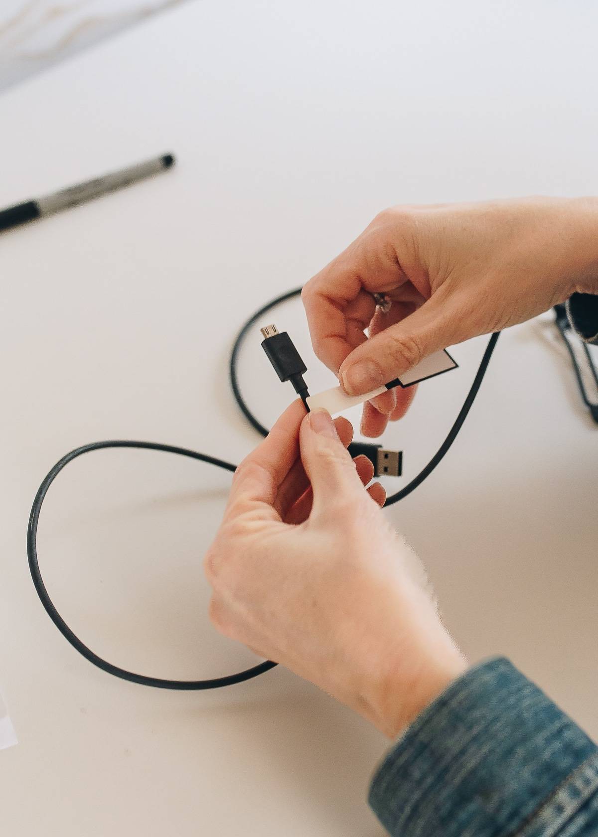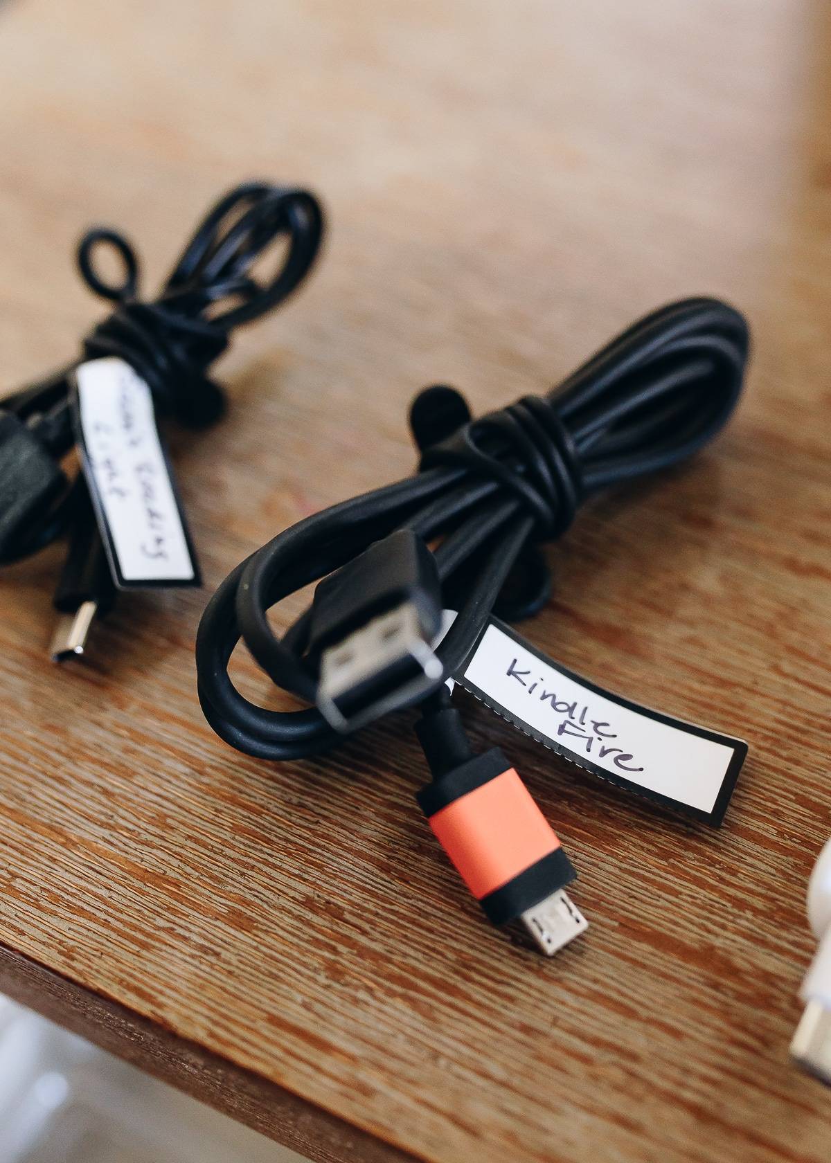 With these ties and labels now at the ready, anytime we unbox something with a cord, we can instantly label it and add it right to our charging station!