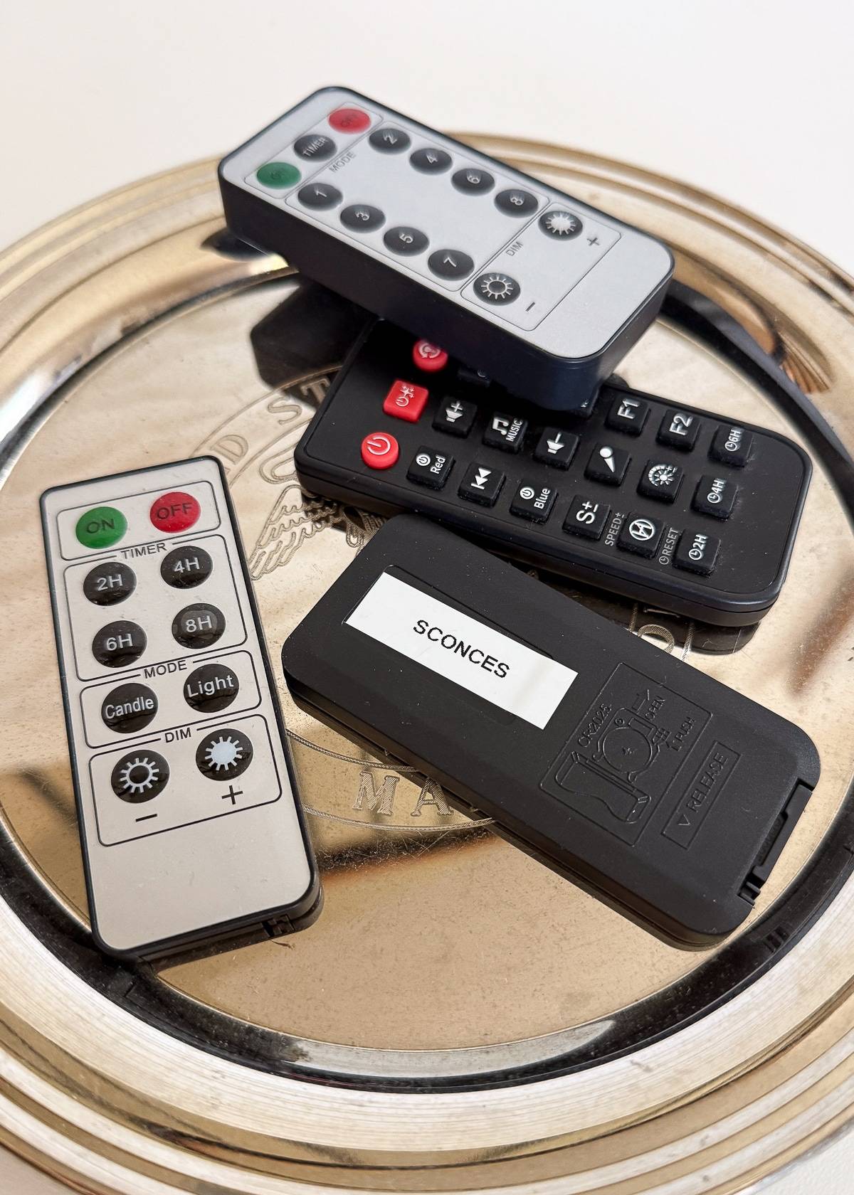 Next to cords, another item that seems to be infiltrating our house are tiny little remotes (for sconces, candles, cabinet lights, kids’ nightlights, and on and on and on).