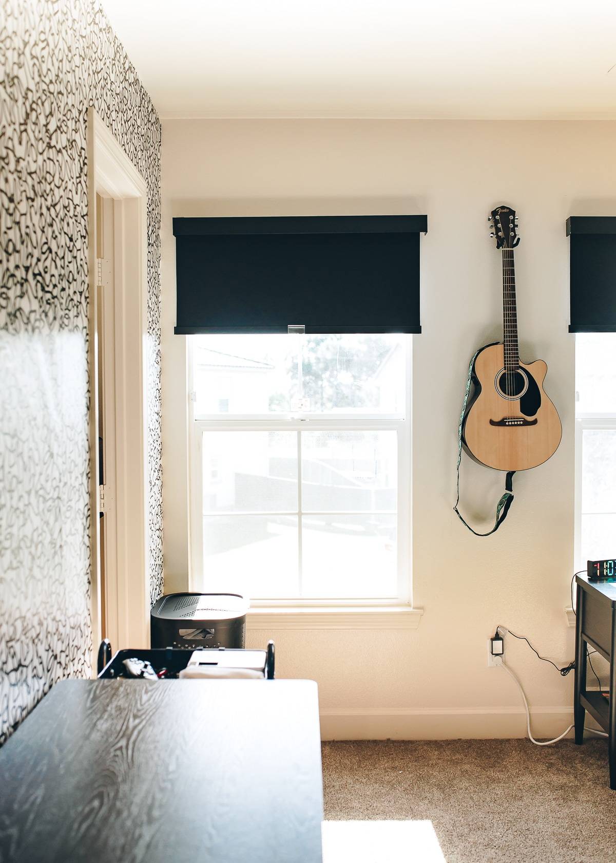 After experimenting with these shades in our family room and ultimately loving them, we opted for a very similar solution for our teenage son’s bedroom.