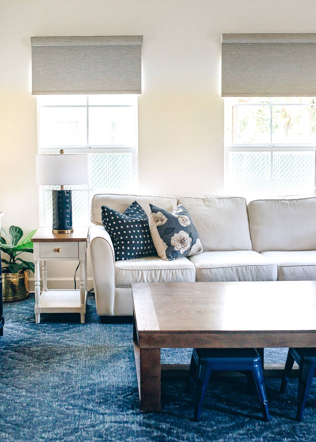 So with the furniture layout set, I had to figure out something that would give my windows that same “stylish” and “complete” feel, but without using curtains.